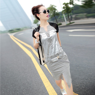 蜜思唯爾夏裝新款配腰帶時尚修身高檔連衣裙包臀不規則裙5227 /
