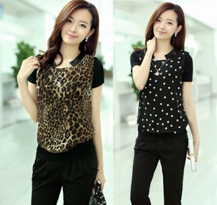 2015夏裝新款短袖雪紡衫韓版波點打底衫女士上衣T恤小衫 /