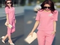 2015歐洲站夏季新款兩件套運動時尚氣質套裝修身小香風套裝職業裝 /