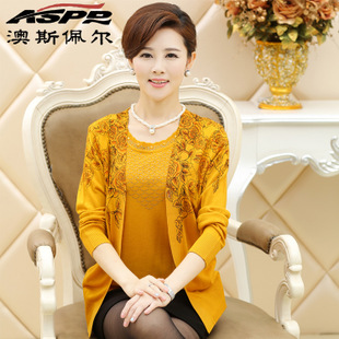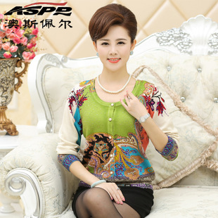 正品印花100%羊絨衫 優雅媽媽裝加大顯瘦針織衫開衫 中老年女裝 /