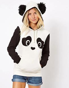 秋冬女裝歐美嬉皮俏皮熊貓印花抓絨黑白撞色衛(wèi)衣女式外套 11816 /