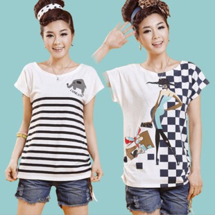 2014夏裝新款韓版潮阿里巴巴女裝批發(fā)網(wǎng)印花短袖女T恤學(xué)生少女裝 /