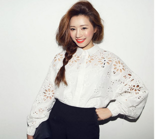 韓國代購 stylenanda復古可愛鏤空刺繡 燈籠袖 襯衣 /