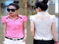 女裝白襯衫短袖職業夏新款韓版修身女士蕾絲上衣打底雪紡衫襯衣潮 /
