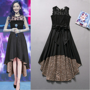 歐洲站2015夏裝新款楊穎明星同款性感蕾絲拼接豹紋連衣裙禮服批發 /