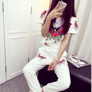 簡介: 建議零售價 ¥188.00 貨號 B20131104 產地 廣州 品牌 自主生產 主圖來源 其他來源 貨源類別 現貨 是否庫存 是 庫存類型 整單 風格 歐美休閑 圖案 印花 面料 針織棉料 款式 褲套裝 上衣款式 T恤 上衣袖長 短袖 褲款式 鉛筆褲 褲長 長褲 流行元素 印花 工藝 印花/印染 上市年份/季節 2015夏季 顏色 白色,黑色 尺碼 M,L