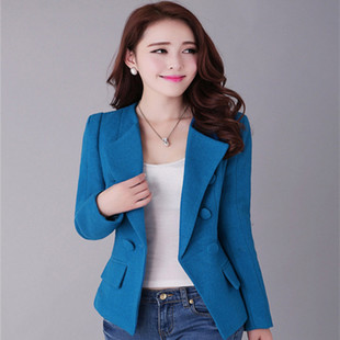 2014秋季女裝新款中長款毛呢外套韓版氣質小清新小西裝呢大衣富坤 /