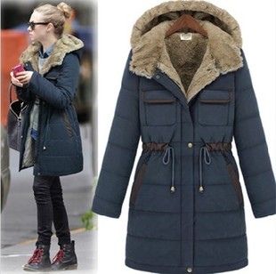 歐美風防寒服風衣中長款羽絨服抽繩歐洲站新款大碼女裝棉衣 /