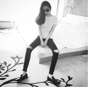 openlady獨家定制 slp黑色膝蓋彈力破洞刀割褲# /