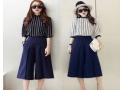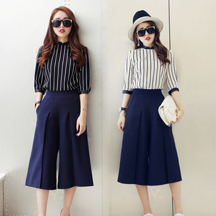 2015春夏新款小香風(fēng)雪紡上衣+修身闊腿褲時尚休閑兩件套套裝 /