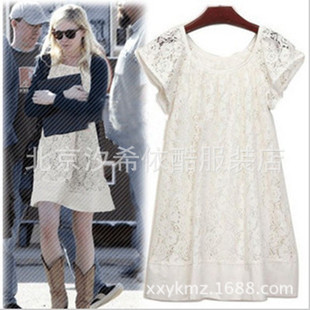 時尚百搭白色蕾絲 顯瘦打底連衣裙 /