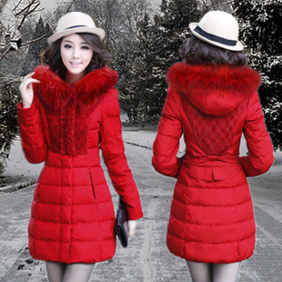 冬季羽絨棉服外套歐美潮中長款修身高端時尚大毛領女式加厚羽絨服 /