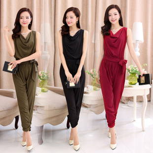 2015夏季連體褲韓版無袖連體衣大碼連體套裝休閑長褲女 /