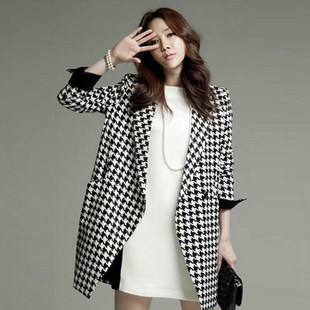 2014秋裝新款韓版中長款大碼修身千鳥格小西裝女西服風(fēng)衣 /