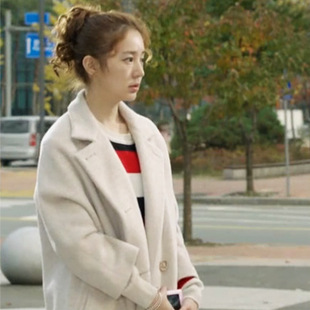 韓國代購韓國未來的選擇尹恩惠同款米白色毛呢外套呢大衣女 /