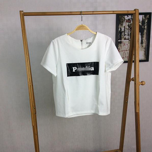 拉夏原單2015夏季新款短袖T恤女圓領字母印花短款白色上衣打底衫 /