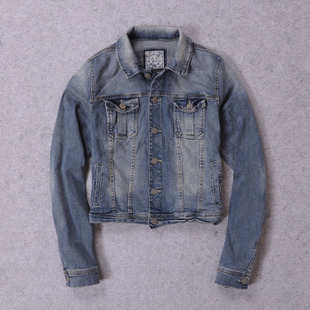 promod 法國單2015春牛仔外套女短款翻領長袖女式修身牛仔衣潮 /