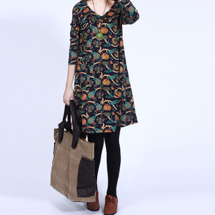 2015夏季納西圓領(lǐng)韓版七分袖休閑印花女裝連衣裙 /