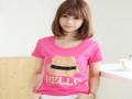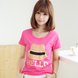 2015夏季圓領短袖T恤女裝 帽子女孩印花可愛學生修身T恤半袖 /