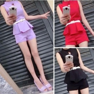 2015夏季新款氣質淑女時尚短褲套裝女無袖背心上衣兩件套女 潮 /