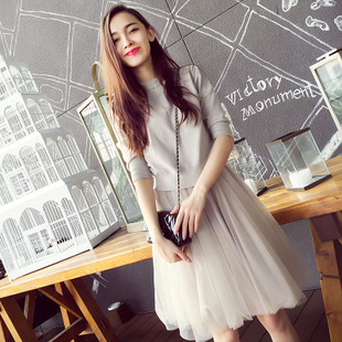 TAKIYASSHOP獨家浪漫小清新小高腰針織網紗蓬蓬兩件套連衣裙 /