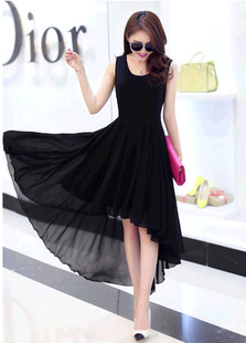 夏季不規則沙灘裙燕尾裙前短后長雪紡連衣裙長裙波西米亞裙 /