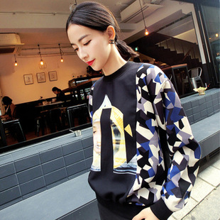 13c秋裝新款G風格大牌波普印花圓領套頭衛衣百搭歐版寬松上衣 /