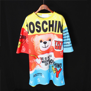 批發潮款MOS莫斯奇諾moschino中長款寬松萌熊T恤連衣裙泰迪熊女夏 /