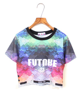 批發日本原宿ZIPPER幾 何 印花菱格Ayumi短款露 臍短袖T恤上衣女 /