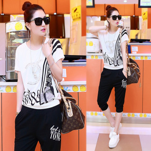 奧代爾棉夏新款休閑套裝女裝韓版T恤短袖運動套裝顯瘦七分褲 /