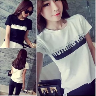 2015夏裝韓系新款流行時髦百搭印花修身圓領短袖T /