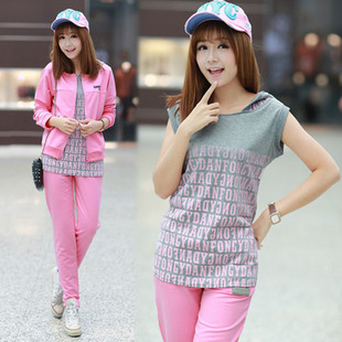 2014韓版秋冬裝連帽三件套運動服運動套裝 女裝休閑服裝免費代發 /