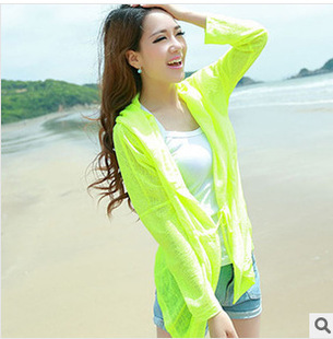 新款批發韓版無扣系帶女士外套 夏季熱賣長袖純色透氣防曬衣 /