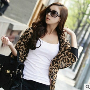 夏季新款 外搭氣質豹紋雪紡女防曬衣 寬松顯瘦防曬服 薄外套 女 /