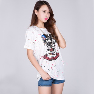 2015卡素蘭 夏裝新款女裝韓版?zhèn)€性破洞骷顱頭寬松顯瘦女T恤 /