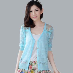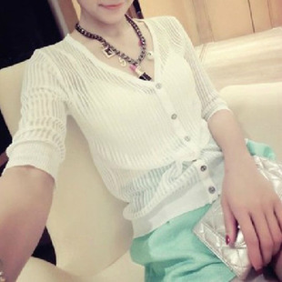 2015夏季新款V領鏤空薄開衫 中袖短款防曬衫空調衫外搭女廠家直銷 /