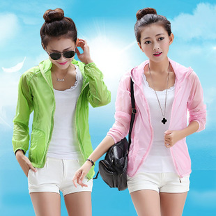 防曬衣防紫外線空調衫糖果色長袖皮膚衣連帽短外套女 /