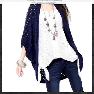 阿卡春秋寬松羊絨鏤空外套蝙蝠袖毛衣罩空調衫針織開衫防曬衣披肩 /
