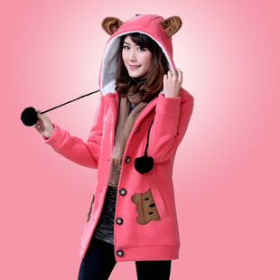 2014秋冬新款少女初高中學生加厚毛絨衫外套寬松衛衣大衣女1449 /