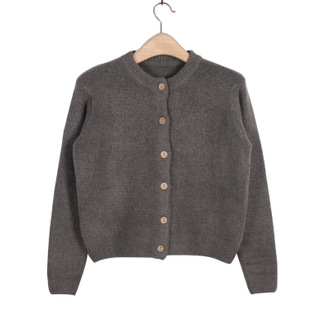 14羊絨加厚毛衣短款外套女圓領純色羊毛木扣子針織毛衣小開衫木扣 /