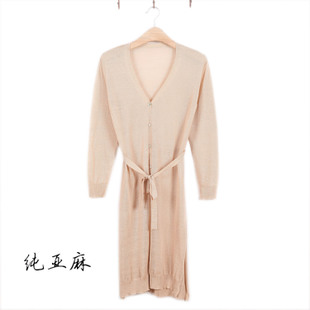 2014初秋外貿原單全亞麻苧麻超薄長袖超長款外套針織防曬衣開衫 /