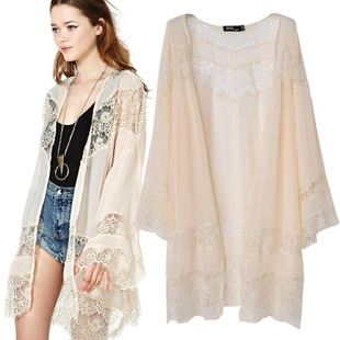 歐美夏季新款女式外套 蕾絲拼接雪紡披肩外套現貨批發 /