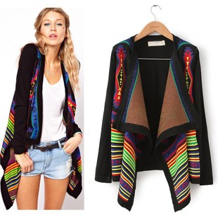 批發秋冬新款歐美不規則民族風撞色開衫毛衣針織衫外套女 /