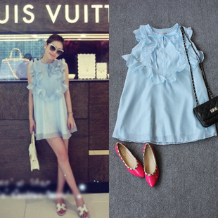 2015夏小清新甜美荷葉邊歐根紗無袖背心娃娃連衣裙 /