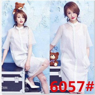 花兒與少年鄭爽明星同款兩件套歐根紗白色長襯衫連衣裙 /