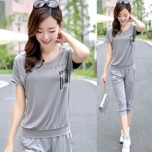 2015夏裝新款胖妹女裝修身休閑大碼短袖t恤七分褲運動套裝兩件套 /