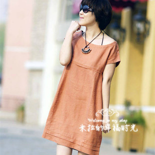 2015夏季新款大碼女裝韓版寬松舒適棉麻短袖亞麻連衣裙 /