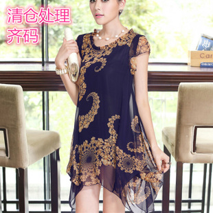 6005# 2015夏裝新款短袖寬松不規則大碼雪紡連衣裙刺繡裙子 /
