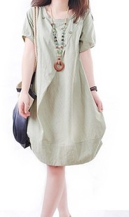 2014夏季新款韓版女裝大碼寬松休閑褶皺圓領(lǐng)短袖連衣裙 /