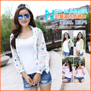 網絡熱銷款防曬衣批發 彩點圓點薄款帶帽防曬衣 可愛波點沙灘衣 /